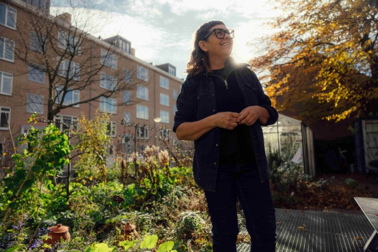 Fiona: ‘We kwamen erachter dat er enorm veel kennis is over voedsel verbouwen in deze buurt. Het is een migrantenwijk en veel mensen zijn afkomstig van het platteland. Alleen, hier in Amsterdam hadden ze geen land meer. Dus zijn we tuintjes gaan aanleggen tussen de gebouwen waar nutteloos groen ligt, grasveldjes zonder invulling. Nu staan er fruitbomen en wordt er volop groenten en kruiden verbouwd. Door de buurt, voor de buurt: we hebben er vlaggetjes bij moeten zetten dat mensen het écht gewoon mogen plukken.’